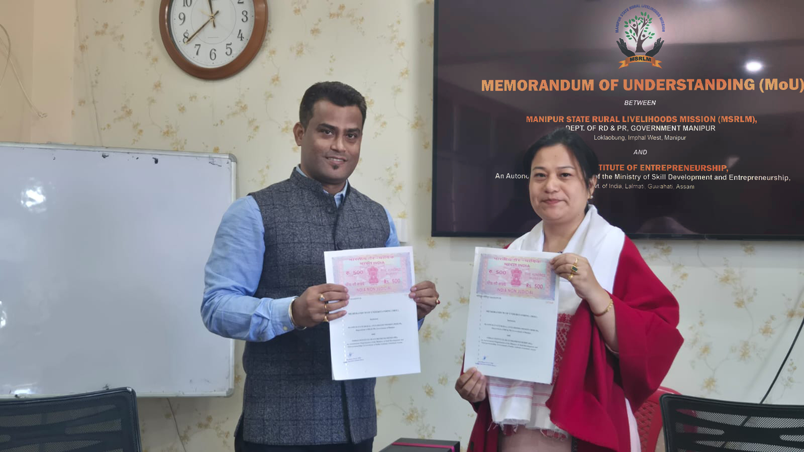 Special Guest at Republic Day Parade, Delhi 2025 Formation of SHGs at TSH Relief Camp Sawombung Gram Shabha at Imphal East IBCB Review Meeting at Imphal Hotel Jiribam CLF conducting a Written Test and Computer Knowledge Screening for the CLF Accountant Special Gram Shabha at Imphal East Thoungambi CLF and Kaifadaba Lan CLF conducting recruitment exam for CLF Manager at Accountant VPRP Convergence Mela IE Back To School at Tengnoupal Campaign against Single Use Plastic Back to School at Imphal East Back to School at Imphal East Phase 2 of BIPARD Livelihoods Training program for IDP women from Manipur The 2nd Executive Committee meeting of the MSRLM at the Conference Hall, Old Secretariat, Imphal West Dr. Molishree, Director of DAY-NRLM, Visits Saras Gallery to Engage with SHG Women and Celebrate Handcrafted Excellence Mama’s Gift distribution at Tengnoupal District One Day Convergence Mela at Lairenjam Meijrao GP, Imphal West Smt. N Bandana, SMD-MSRLM along with Smt. Pooja Elangbam, DC-Bishnupur at Rural Roots Market, Leimapokpam, Nambol Shri Ajay Kumar Bhalla, Hon’ble GoM, inspects MSRLM’s SHG stall at Har Ghar Thiranga, MSFDS Special Guest in Independence Day 2025, Delhi MSRLM Signs MoU with PNB Inauguration of Rural Roots Market, Irilbung, IE Inauguration of Rural Roots Market, Tezpur, IE Mobile Documentation Workshop for MSRLM Staff Governor of Manipur extended financial assistance to the MSRLM to strengthen the development and distribution of “Mama’s Gift” MoU signed between the MSRLM and the Indian Institute of Entrepreneurship (IIE) for the effective implementation of the SVEP in the State of Manipur.